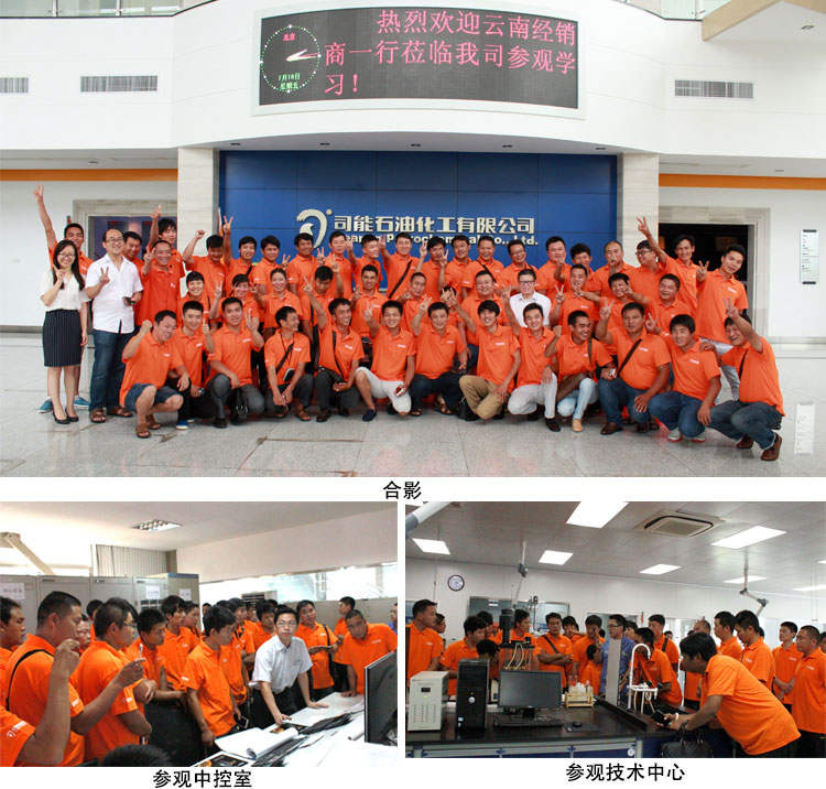 ? ? ? ? 經(jīng)過(guò)前期的精心組織和安排,昆明經(jīng)銷商團(tuán)隊(duì)一行42人于2015年7月10日-7月11日蒞臨司能石油化工有限公司進(jìn)行了參觀和培訓(xùn),司能石化營(yíng)銷公司副總經(jīng)理潘健康先生以及相關(guān)人員予以熱情地接待。從昆明到柳州,經(jīng)歷了一天一夜旅途奔波的客人們,雖然辛苦,但是他們?nèi)耘f興致勃勃參觀了司能的企業(yè)展廳,技術(shù)中心,調(diào)和廠,中控室以及自動(dòng)分裝線等重點(diǎn)區(qū)域,更加直觀地了解了司能的柳州廠區(qū)廠貌,對(duì)司能潤(rùn)滑油的整個(gè)生產(chǎn)過(guò)程也有了更為清晰的認(rèn)識(shí)。除此之外,司能石化技術(shù)中心為來(lái)賓們進(jìn)行了為期一天的專業(yè)的潤(rùn)滑油知識(shí)培訓(xùn)。