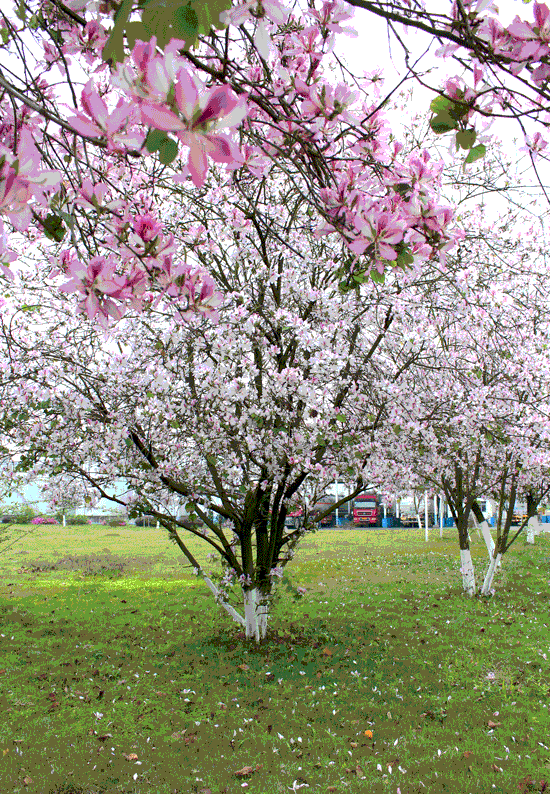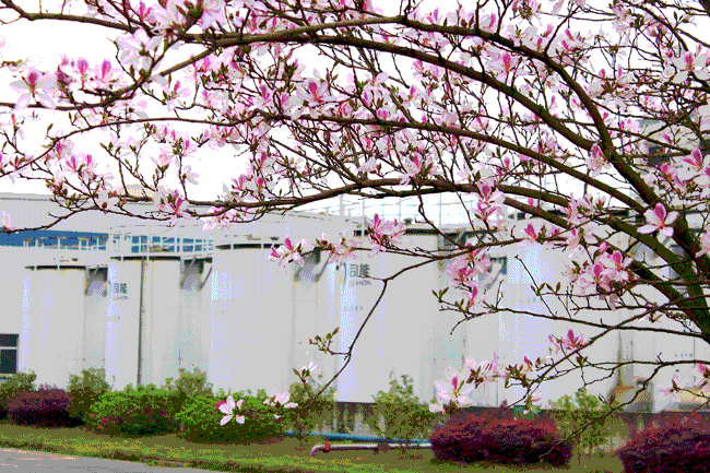 司能石油化工有限公司廠區(qū)內(nèi)的紫荊花一夜之間競相怒放,真有一番“夜來風(fēng)雨聲,花‘開’知多少”的情趣!