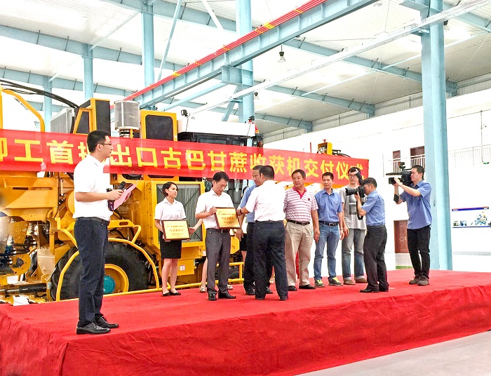 ? ? ? ? 2016年8月18日,廣西柳工農(nóng)業(yè)機(jī)械股份有限公司首批出口古巴甘蔗收割機(jī)交付儀式在其廠區(qū)總裝車間舉行,柳工首批5臺(tái)甘蔗收獲機(jī)正式出口古巴。我司副總經(jīng)理、總工程師吳憲,柳州工廠銷售部部長(zhǎng)陳遠(yuǎn)銘作為司能代表應(yīng)邀參加了此次儀式。