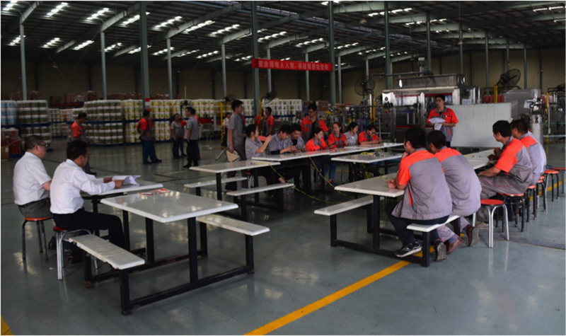 本次質(zhì)量月競賽活動由知識競賽和技能競賽兩部分組成。知識競賽以知識搶答的形式展開,有小包裝4組、中控室1組、200L 1組、調(diào)油班1組、設(shè)備和內(nèi)勤1組,共8個參賽小組24名員工參加競賽。技能競賽又分為封箱機調(diào)試速度比拼、旋蓋機調(diào)試速度比拼、油墨噴碼機調(diào)試速度比拼、200L空桶滾桶速度比拼、濾袋更換速度比拼、俯臥撐、扳手腕7項比賽內(nèi)容,共有20余名員工參加比賽。