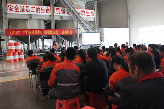 為貫徹落實習近平總書記關(guān)于“弘揚勞模精神和工匠精神”的重要指示精神,傳播向上向善正能量,公司黨支部于2018年11月30日在調(diào)合車間開展“學勞模精神,做極致工匠”道德講堂活動。